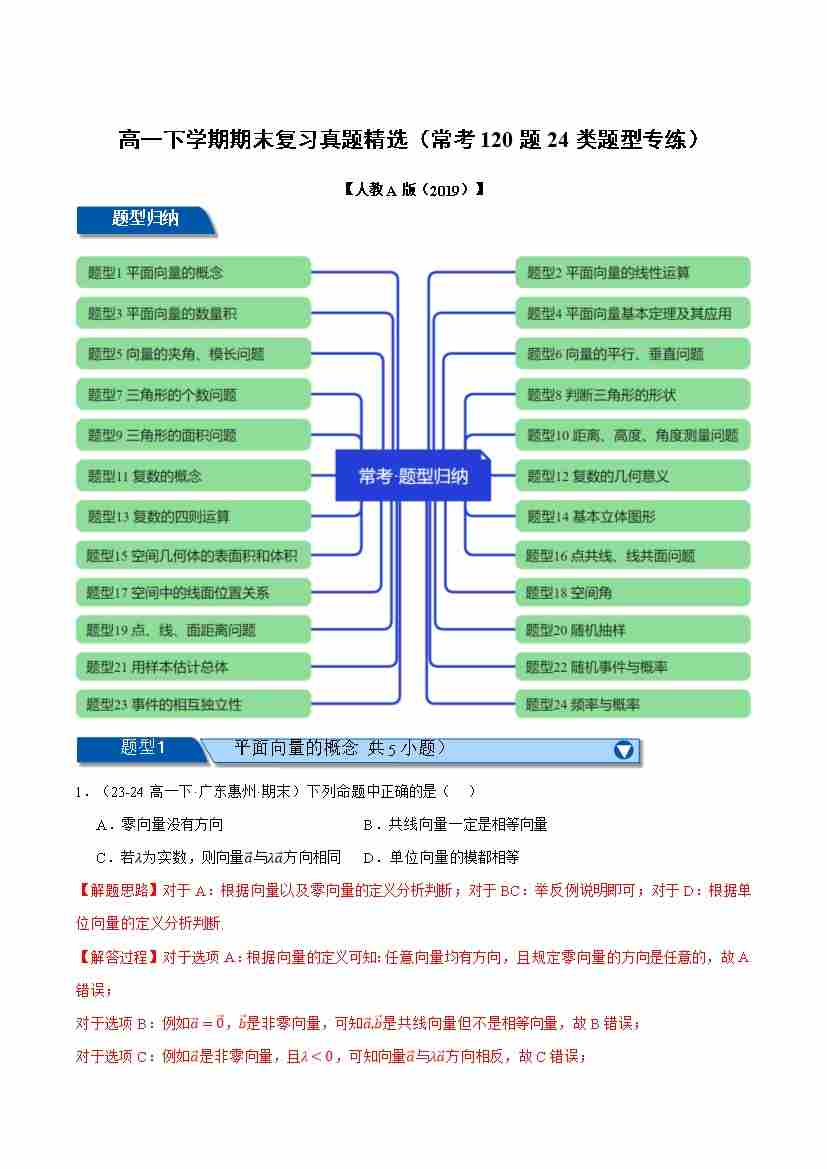 高一下学期期末复习真题精选(常考120题24类题型专练)(教师版)