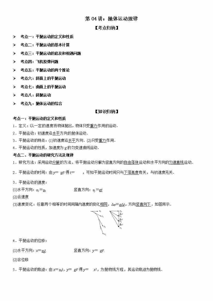 第04讲:抛体运动规律 学生版