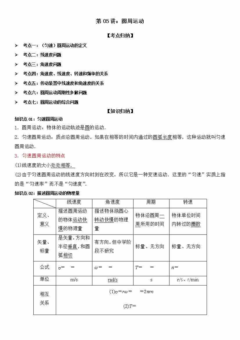 第05讲:圆周运动 学生版