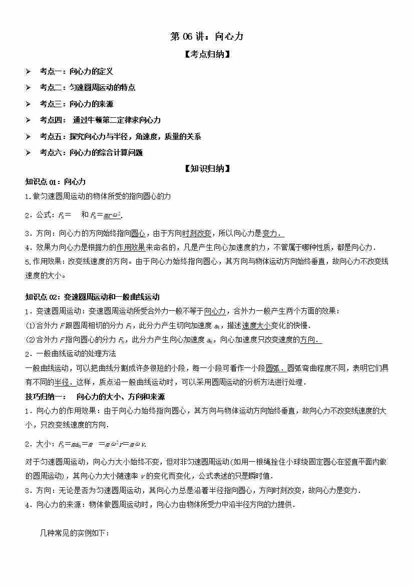 第06讲:向心力 学生版
