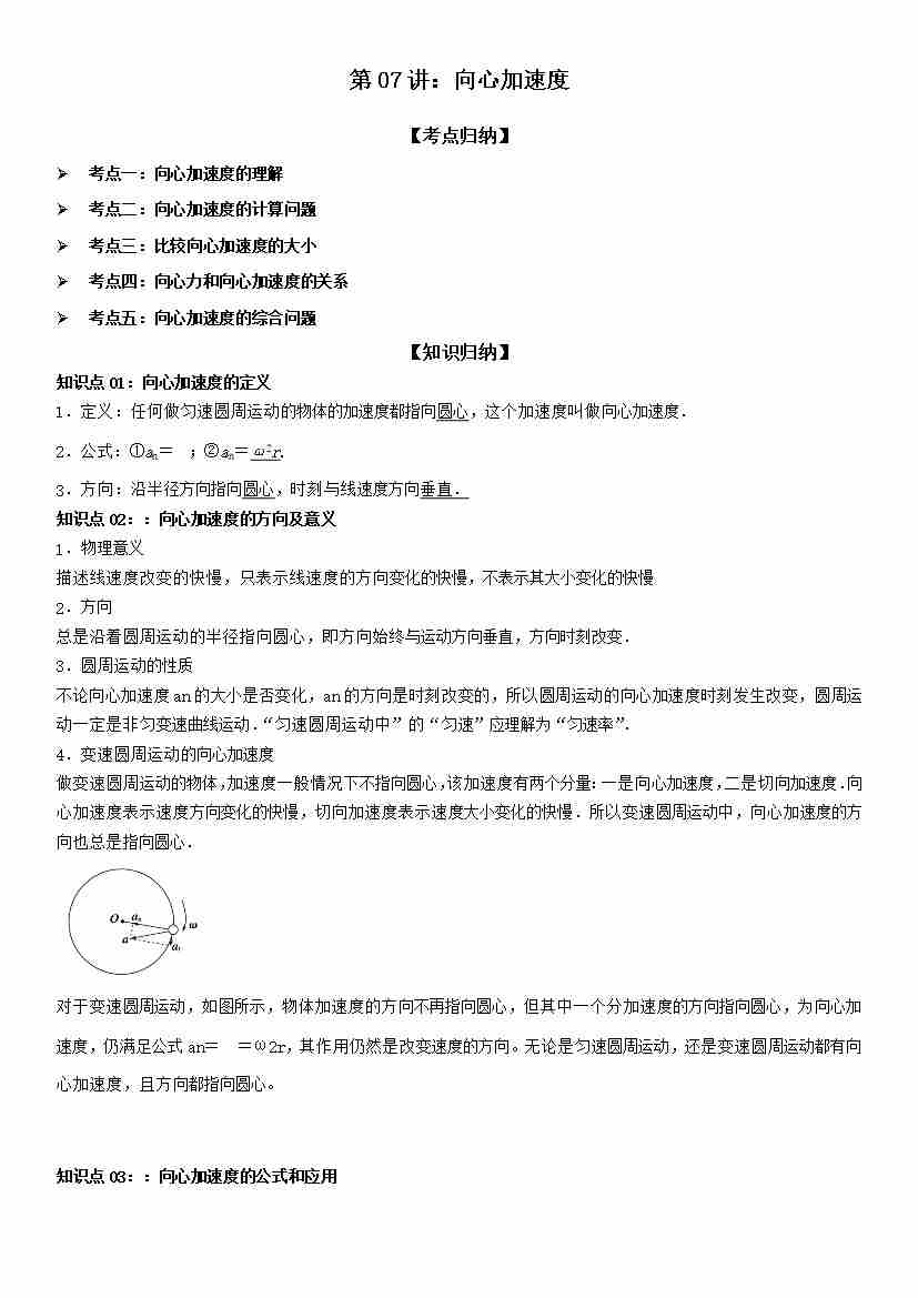 第07讲:向心加速度 学生版