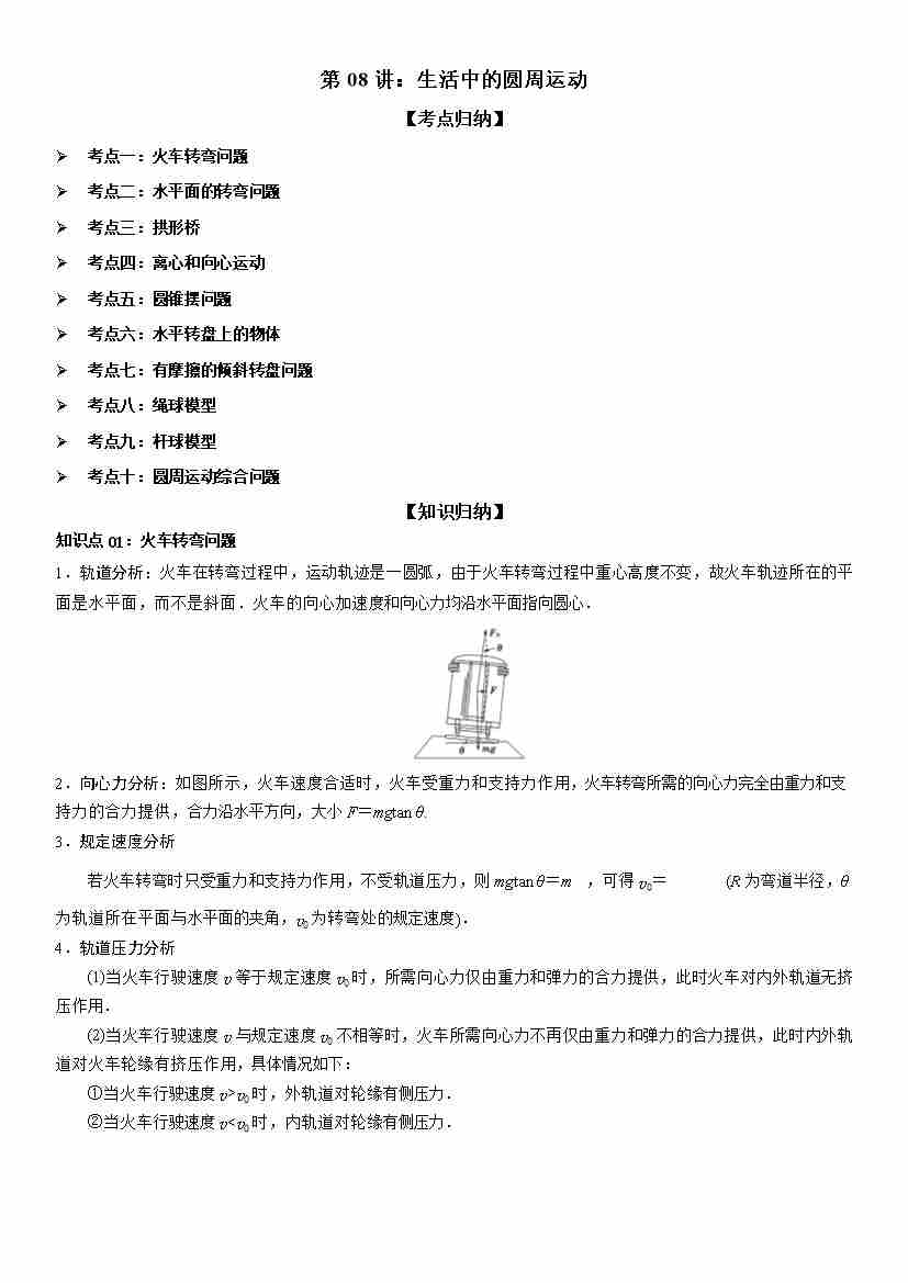 第08讲:生活中的圆周运动 学生版