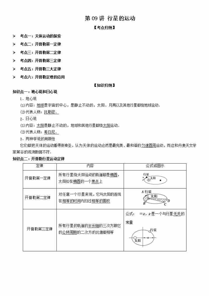 第09讲 行星的运动 教师版