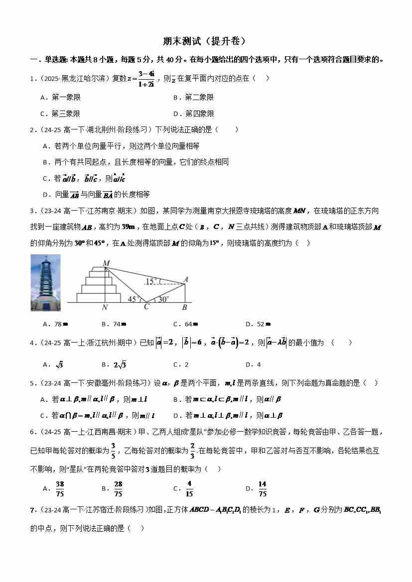 高一下学期期末测试(提升卷)(学生版)