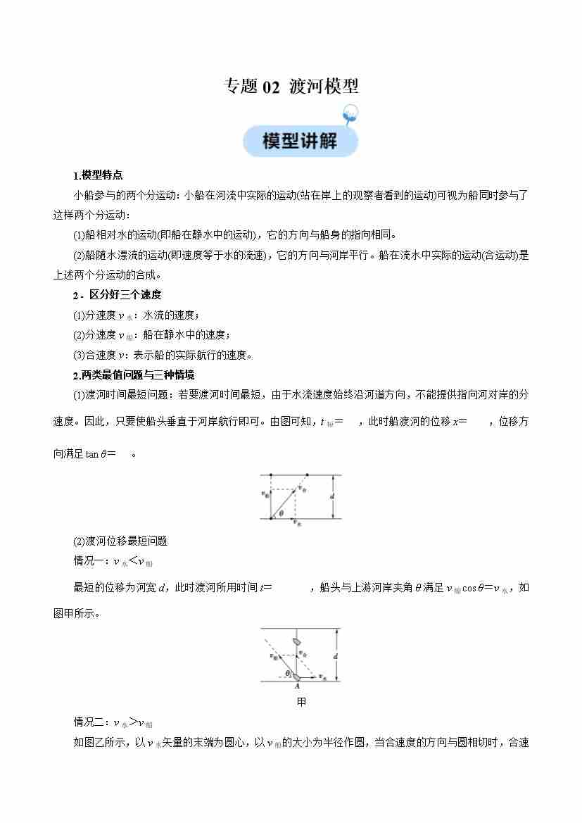 专题02 渡河模型(学生版)