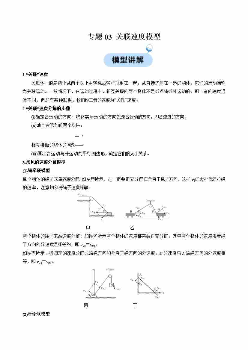 专题03 关联速度模型(学生版)