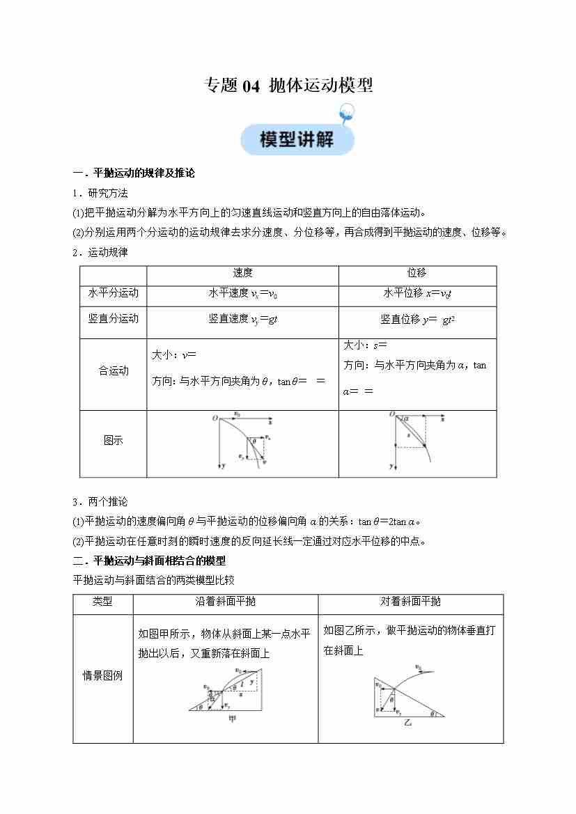 专题04 抛体运动模型(学生版)