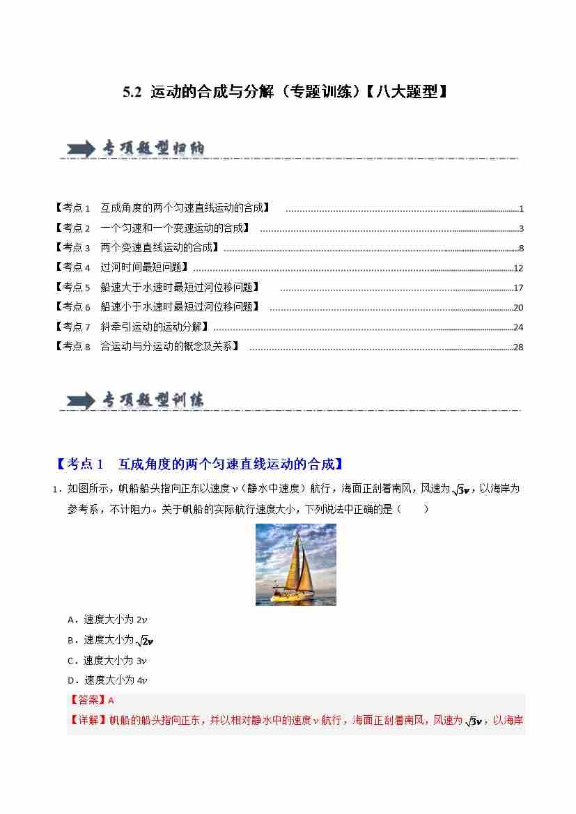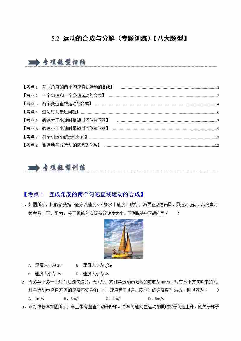 5.2 运动的合成与分解(专题训练)(八大题型)(学生版)