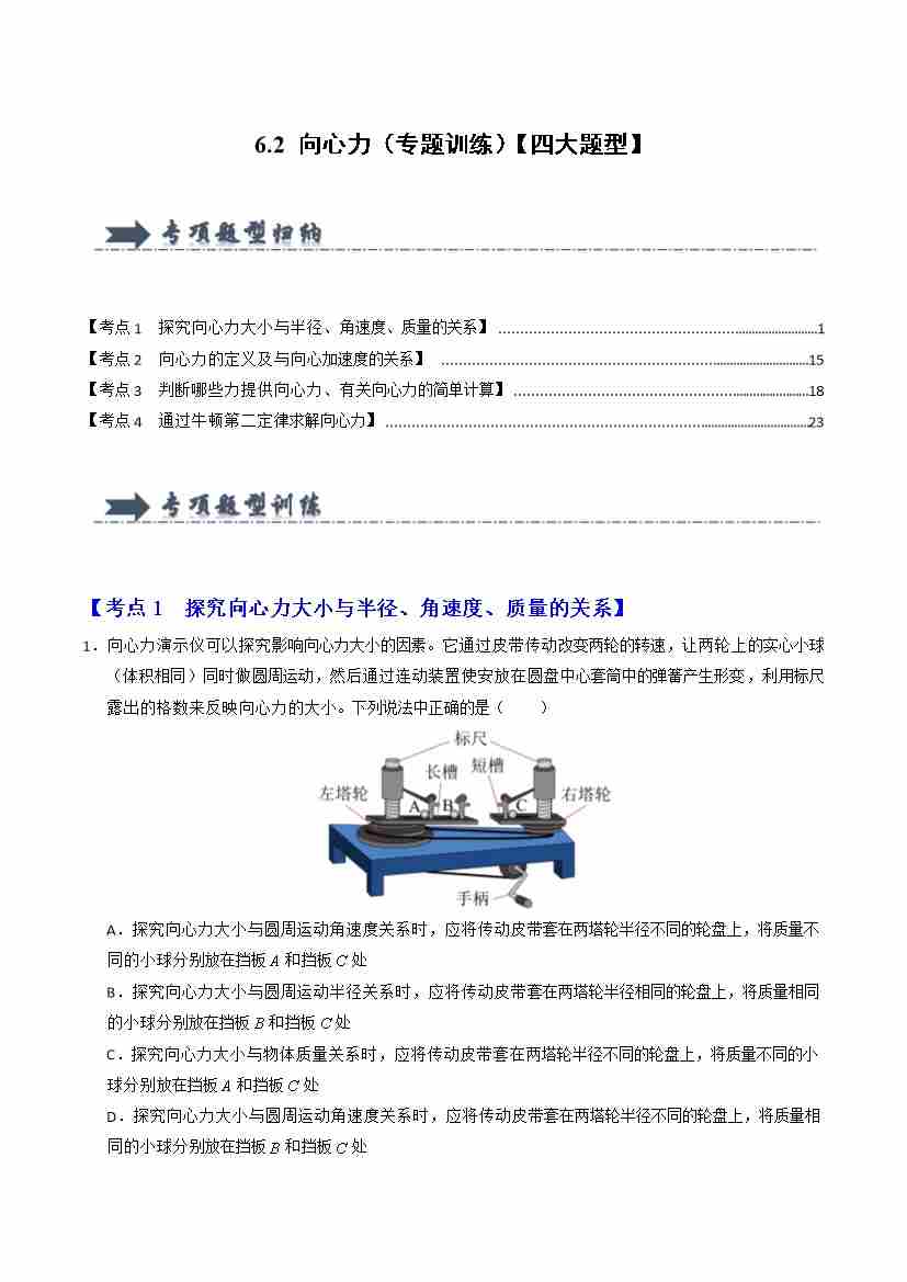 6.2 向心力(专题训练)(四大题型)(学生版)