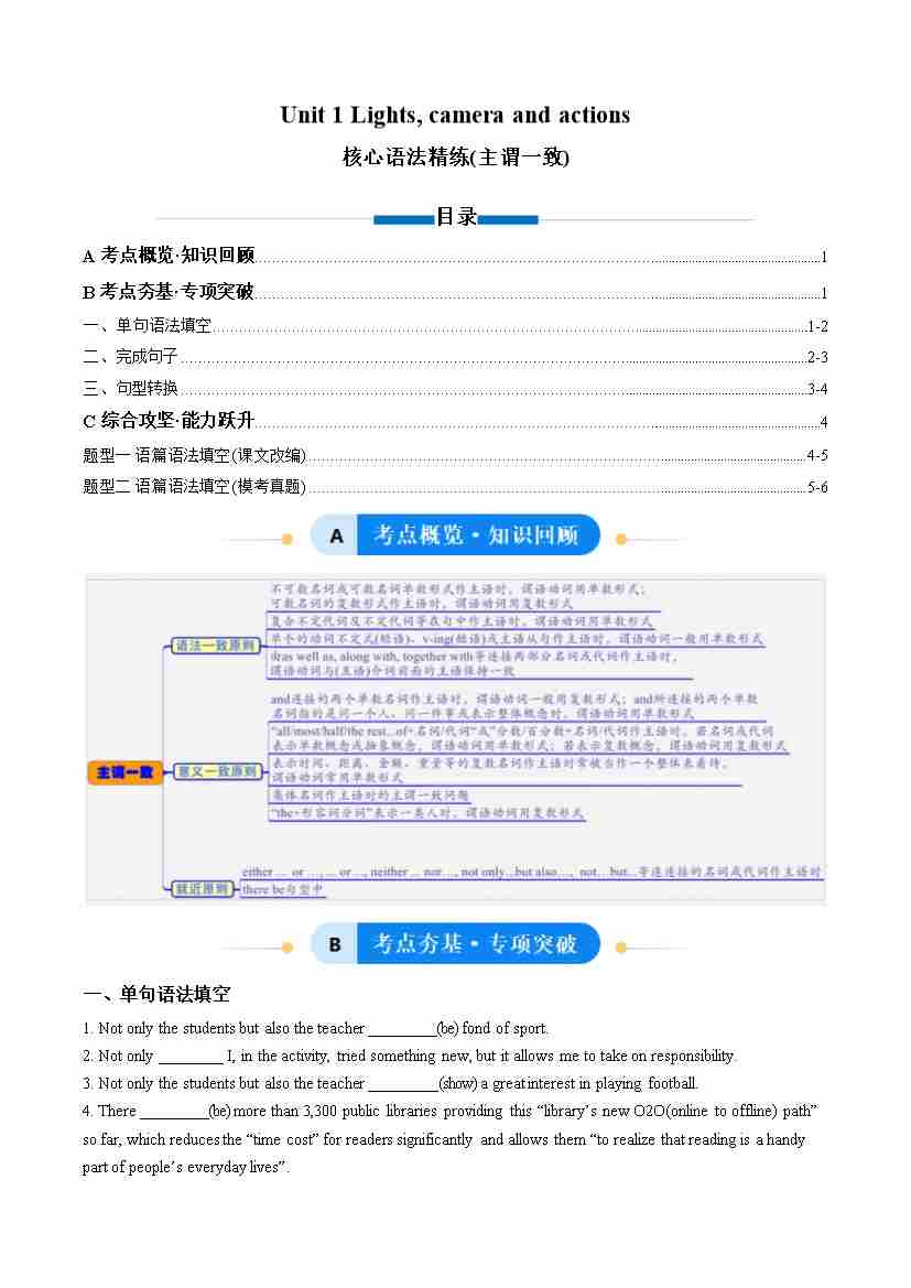 Unit 1 Lights, camera and action! 主谓一致(单元核心语法精练)(学生版)