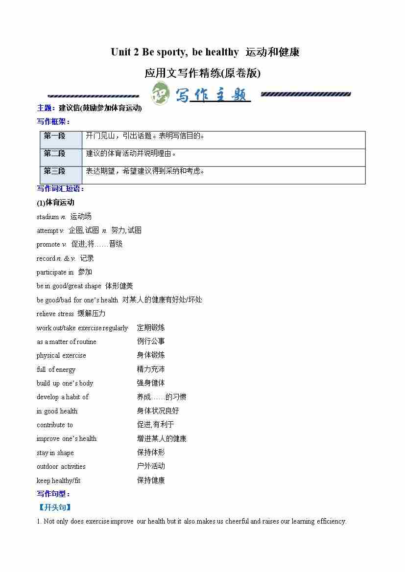 Unit 2 Be sporty, be healthy运动和健康(单元应用文写作精练)(学生版)