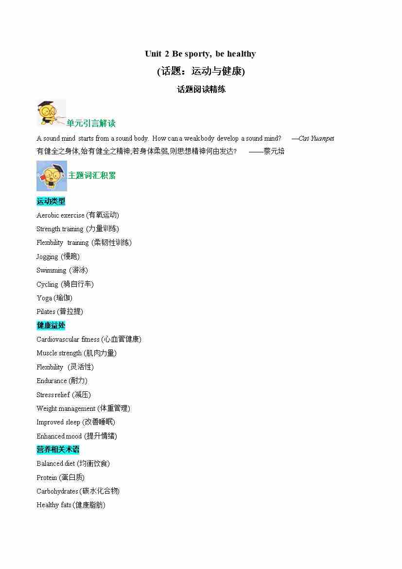 Unit 2 Be sporty, be healthy(话题阅读精练)(学生版)