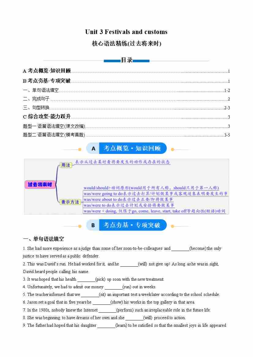 Unit 3 Festivals and customs 过去将来时(单元核心语法精练)(学生版)