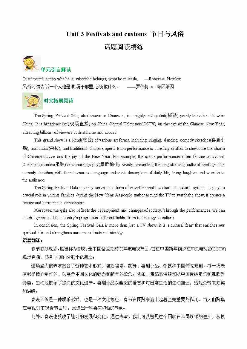 Unit 3 Festivals and customs(话题阅读精练)(学生版)