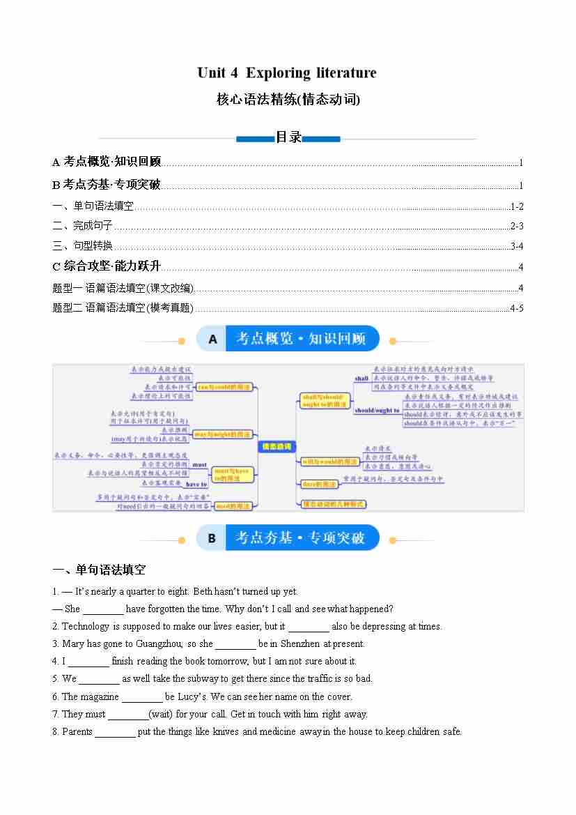 Unit 4 Exploring literature 情态动词(单元核心语法精练)(学生版)