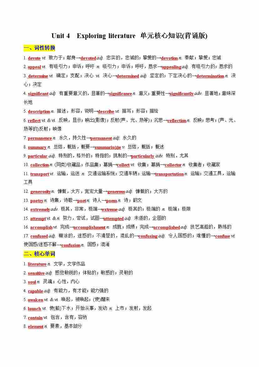 Unit 4 Exploring lliterature(单元核心知识)(背诵版)