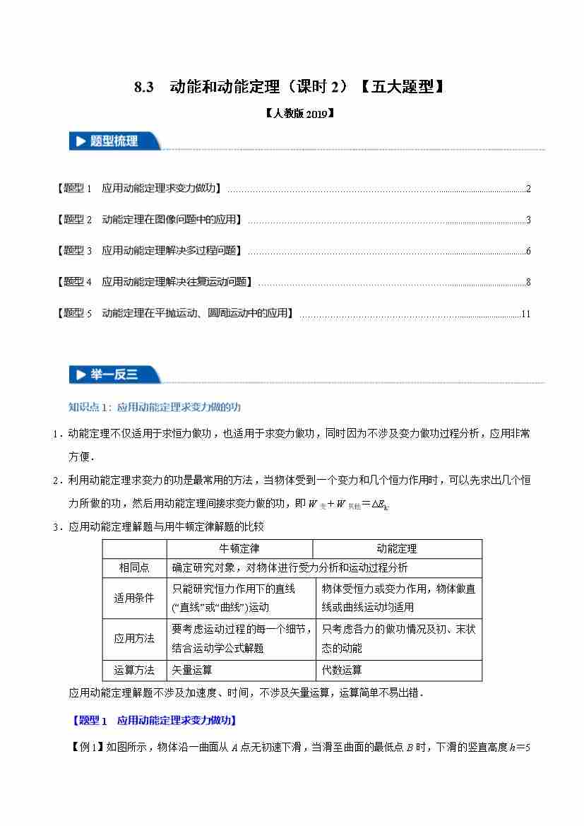 8.3 动能和动能定理(举一反三)(课时2)(五大题型)(教师版)