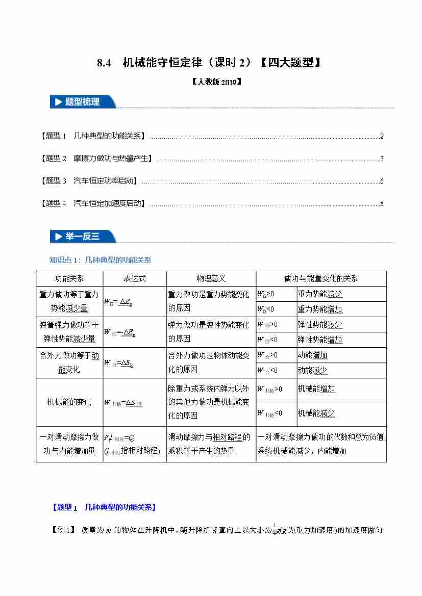 8.4 机械能守恒定律(课时2)(举一反三)(四大题型)(学生版)