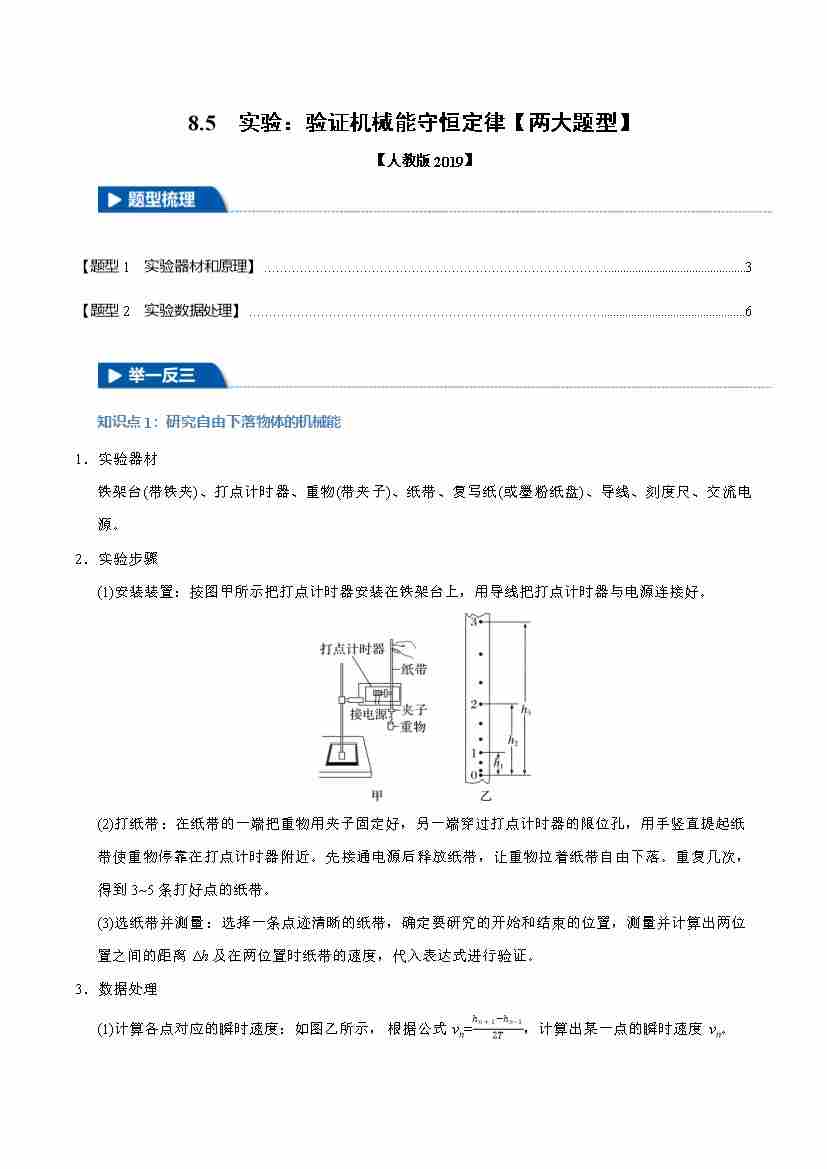 8.5 实验:验证机械能守恒定律(举一反三)(两大题型)(教师版)