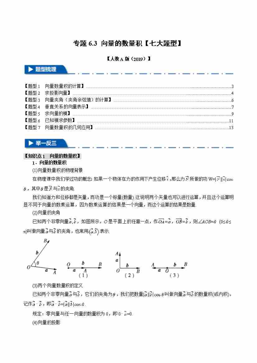 专题6.3 向量的数量积(七大题型)(举一反三)(人教A版2019必修第二册)(学生版)