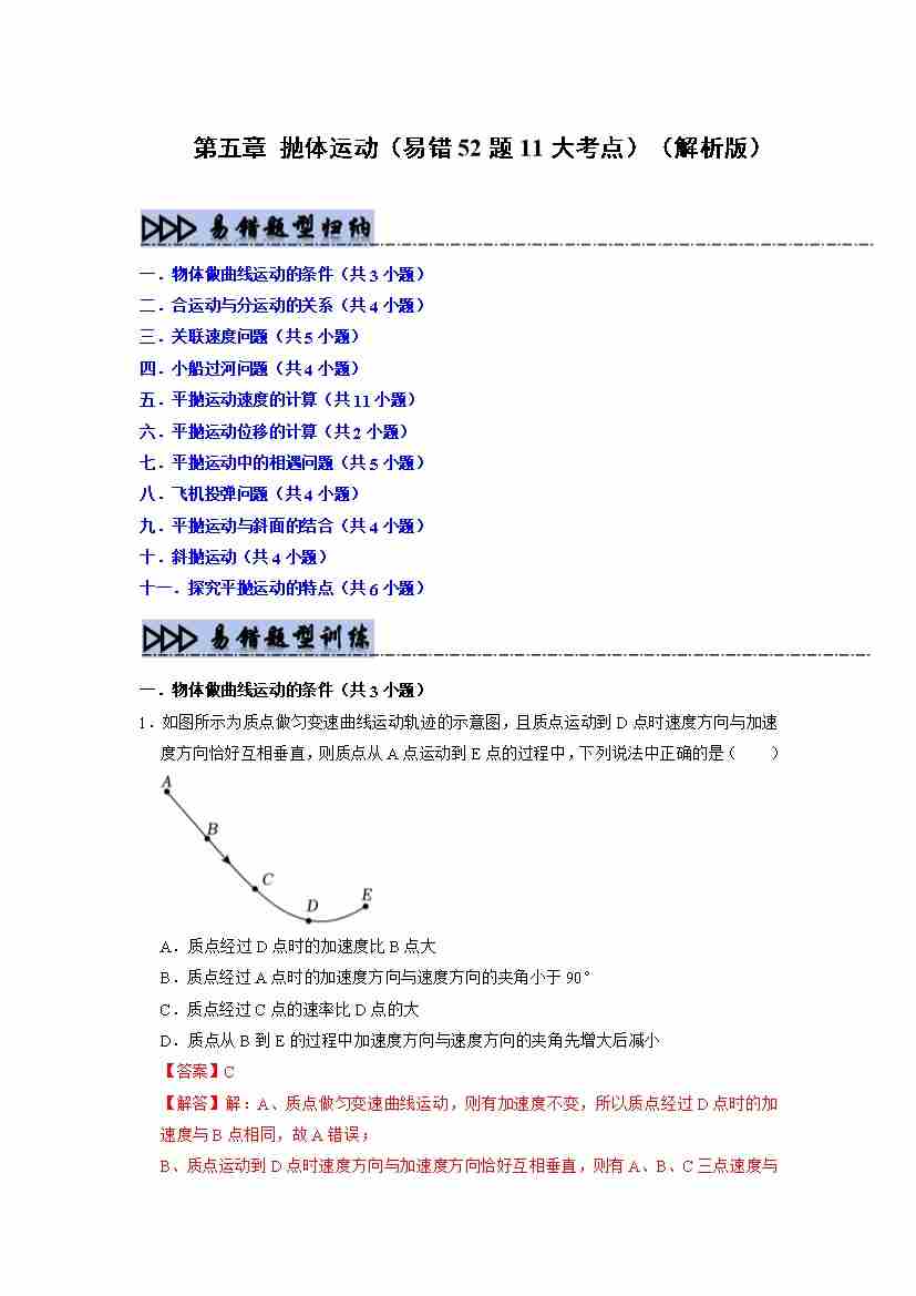 第5章 抛体运动(易错52题11大考点)(教师版)