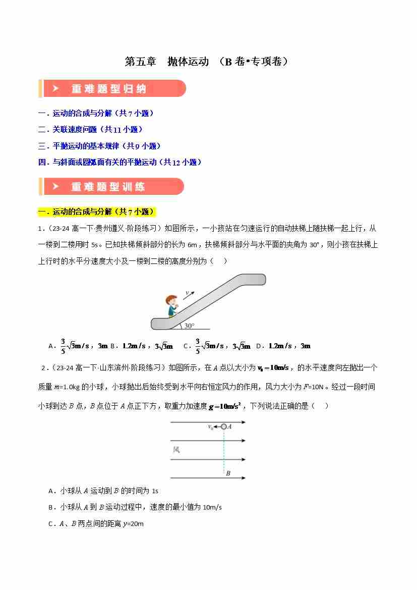 第五章 抛体运动 (B卷 专项卷)(重难练39题共四大考点)(学生版)