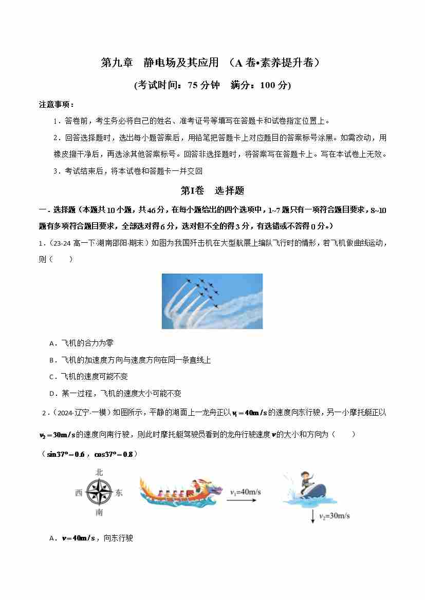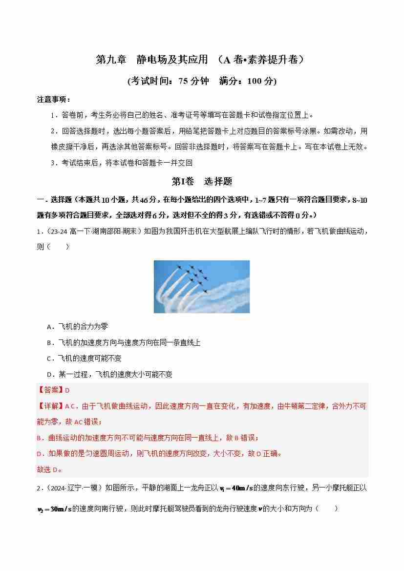 第五章 抛体运动(A卷 素养提升卷)(学生版)