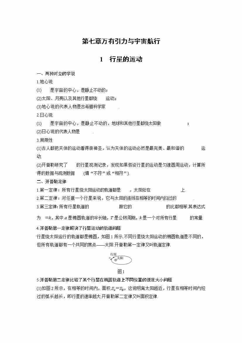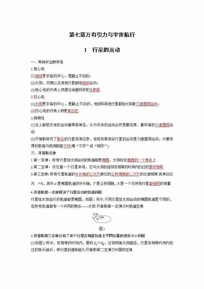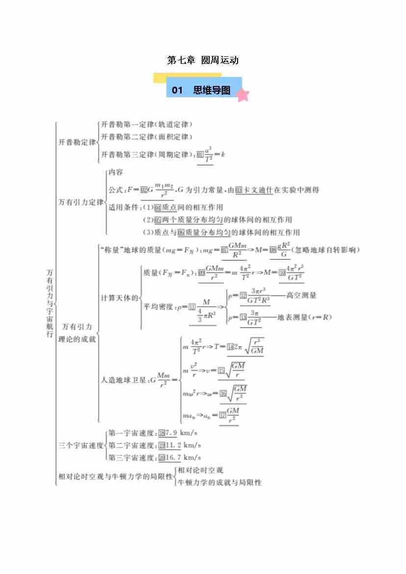第七章 万有引力与宇宙航天(知识清单)(学生版)