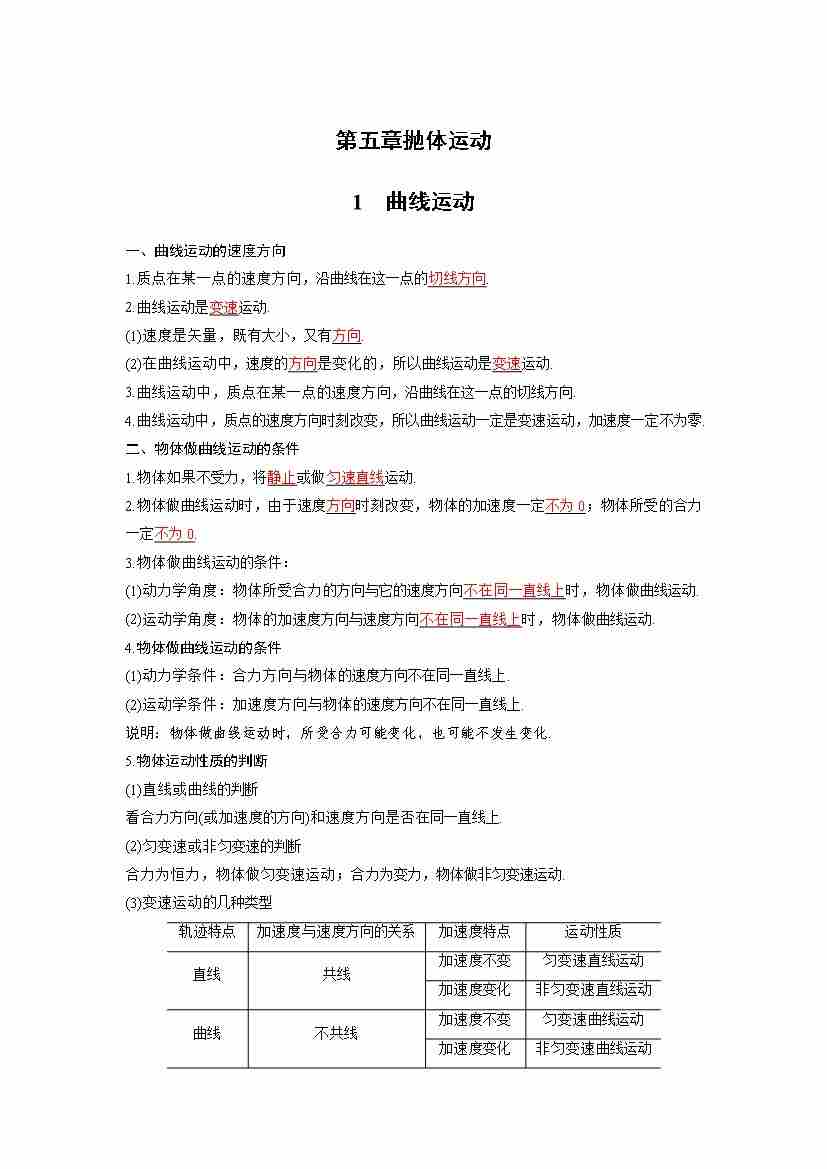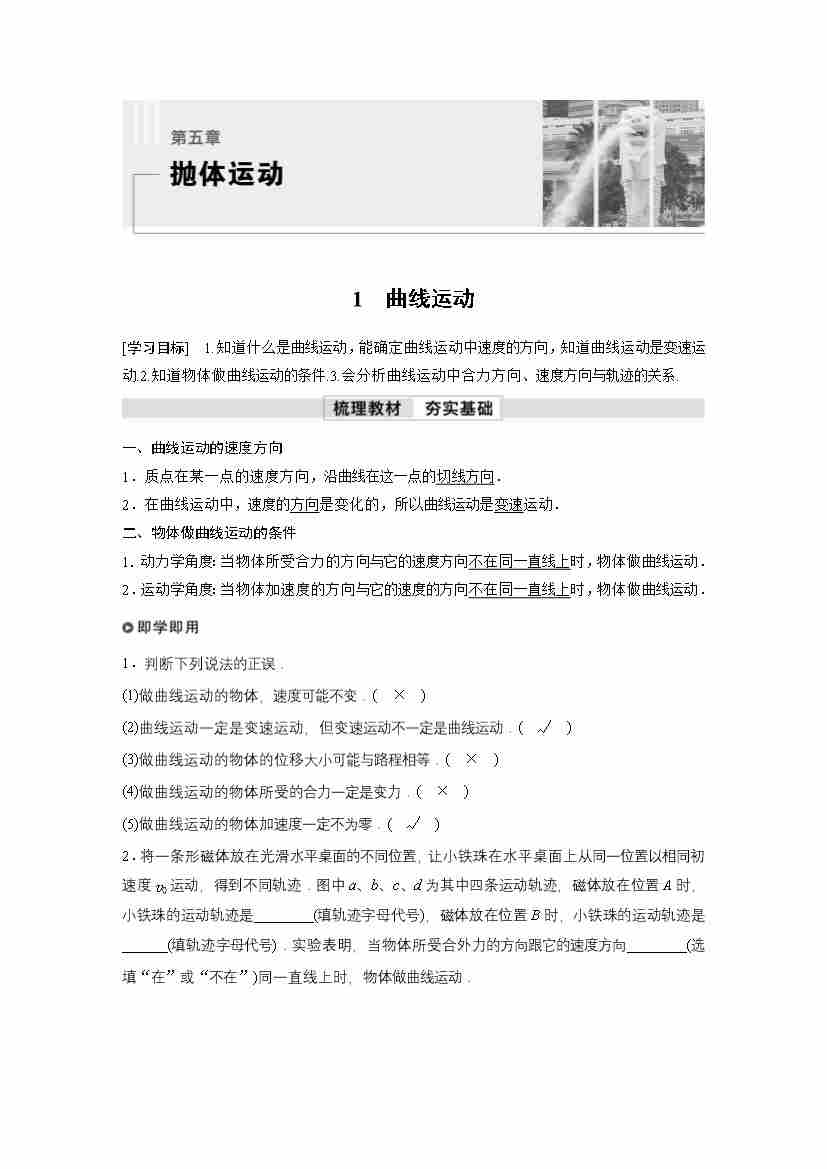 高中物理新教材同步必修第二册 第5章 1 曲线运动
