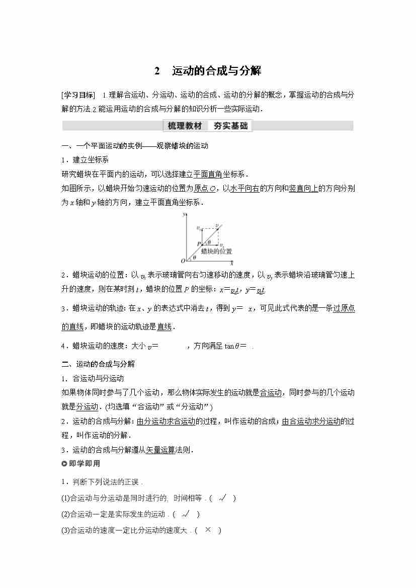 高中物理新教材同步必修第二册 第5章 2 运动的合成与分解
