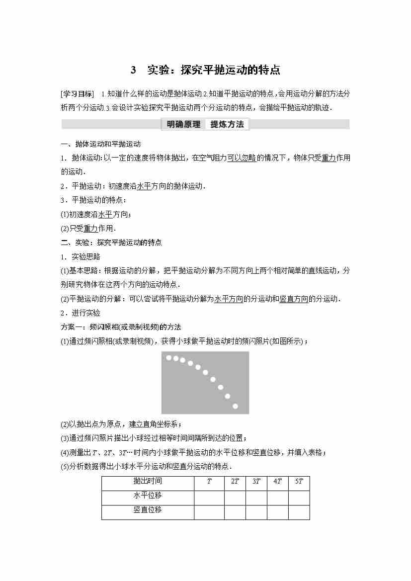 高中物理新教材同步必修第二册 第5章 3 实验:探究平抛运动的特点