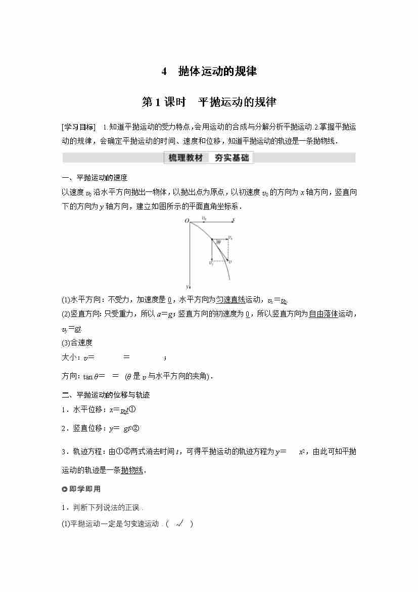 高中物理新教材同步必修第二册 第5章 4 第1课时 平抛运动的规律
