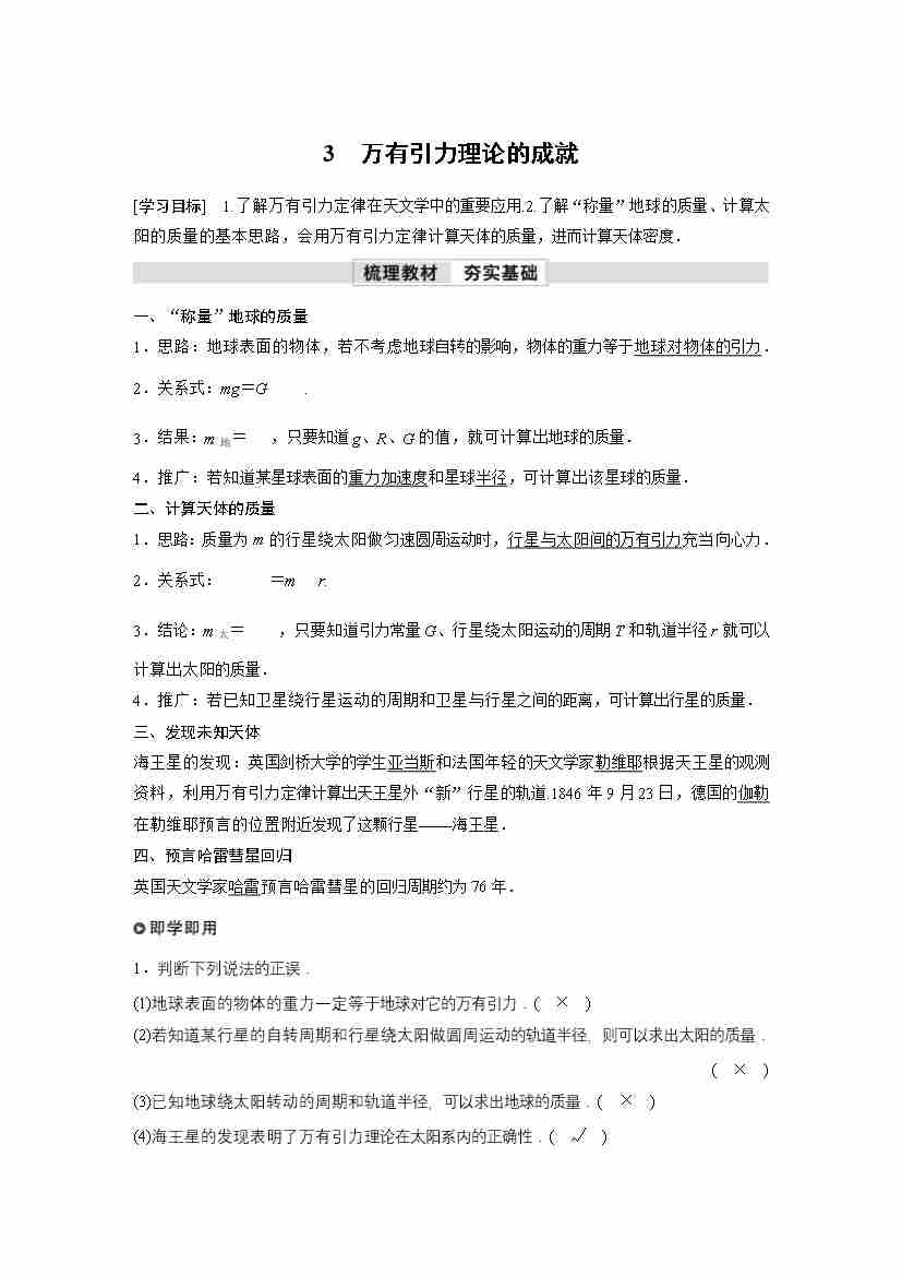 高中物理新教材同步必修第二册 第7章 3 万有引力理论的成就