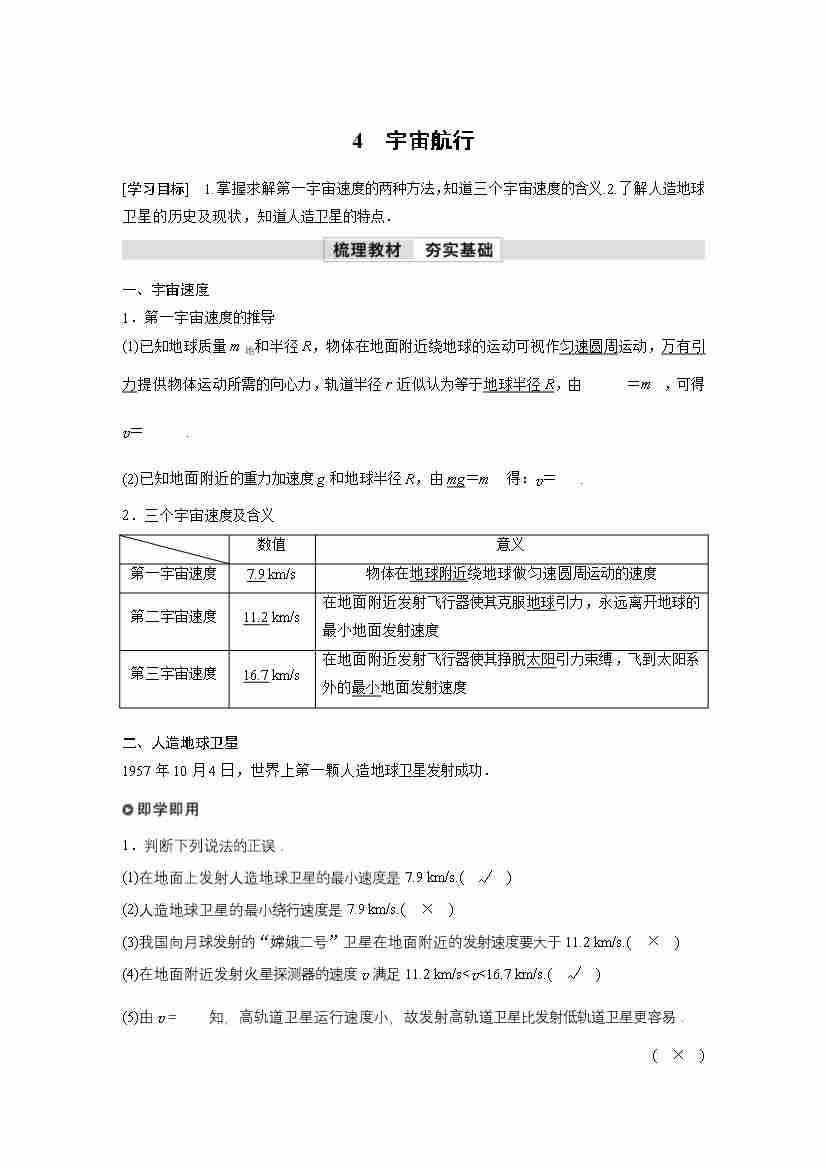 高中物理新教材同步必修第二册 第7章 4 宇宙航行