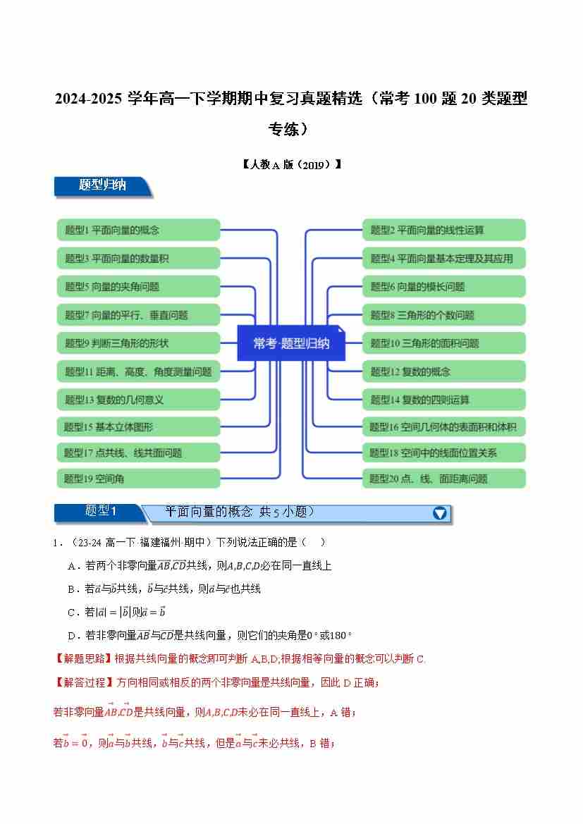 高一下学期期中复习真题精选(常考100题20类题型专练)(教师版)