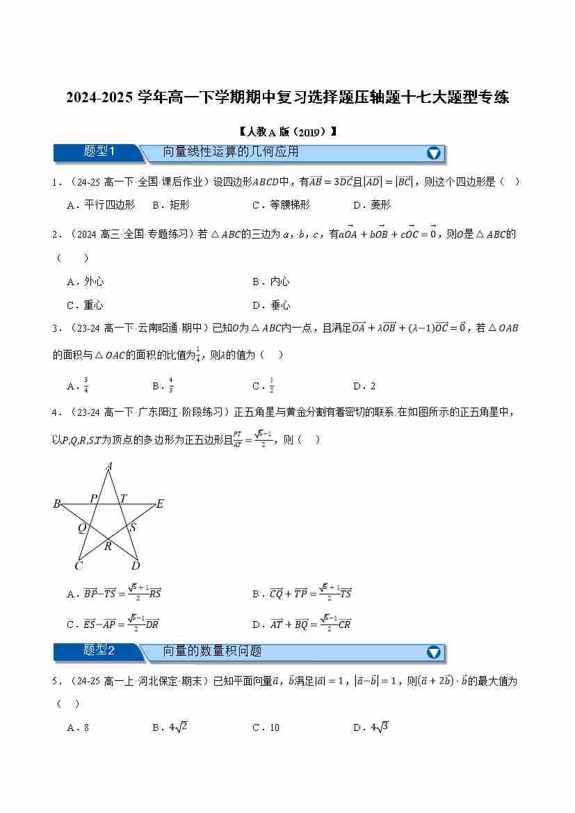 高一下学期期中复习选择题压轴题十七大题型专练(学生版)