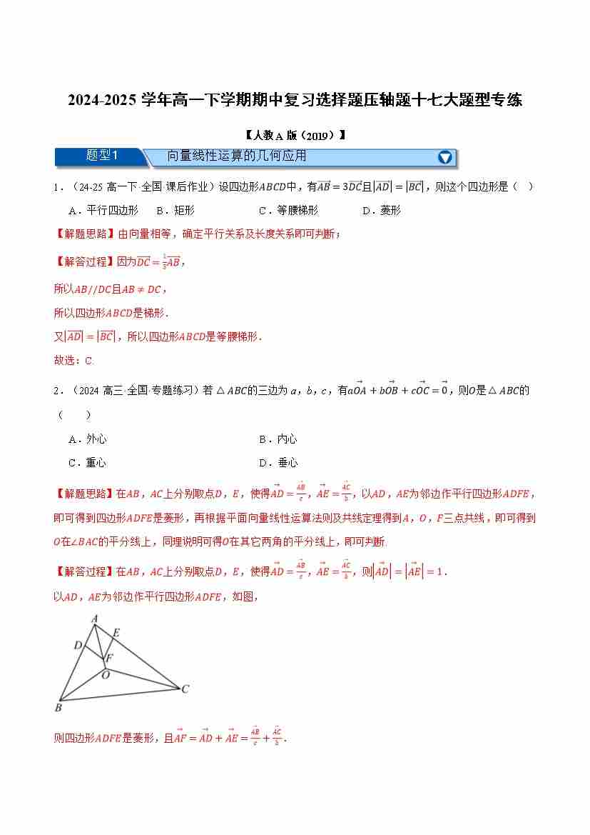 高一下学期期中复习选择题压轴题十七大题型专练(教师版)