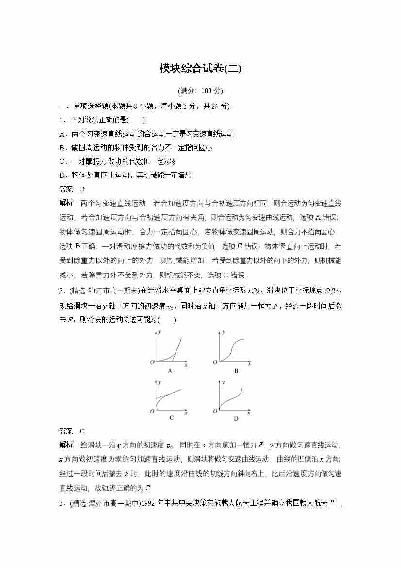 高中物理新教材同步必修第二册 模块综合试卷(一)