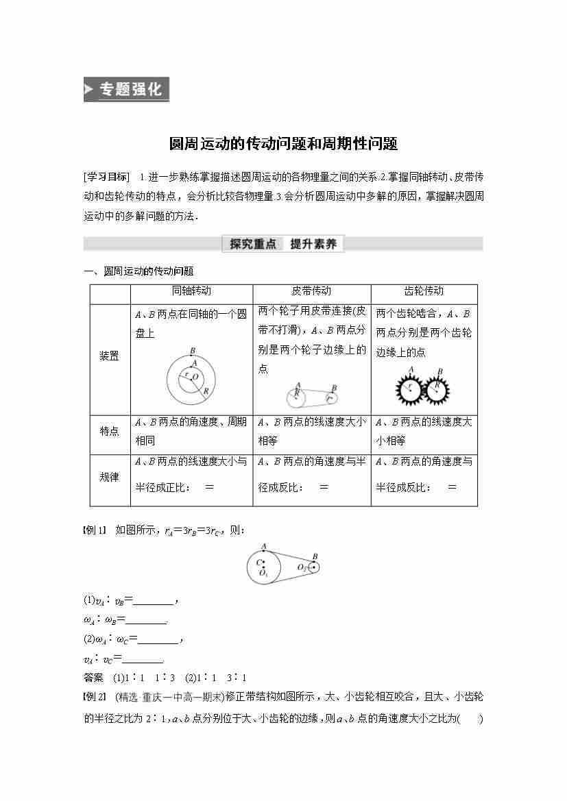 高中物理新教材同步必修第二册 第6章 专题强化 圆周运动的传动问题和周期性问题