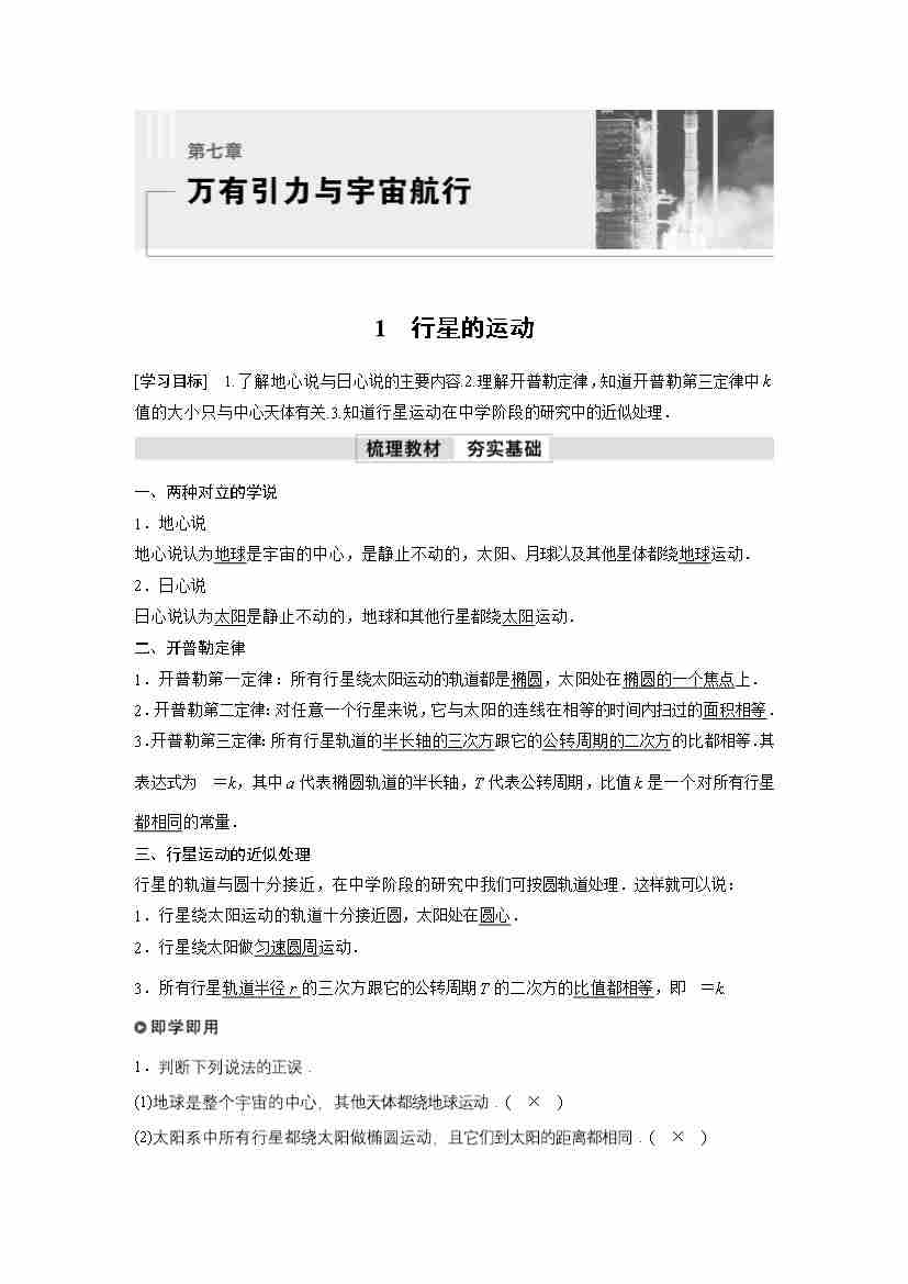 高中物理新教材同步必修第二册 第7章 1 行星的运动