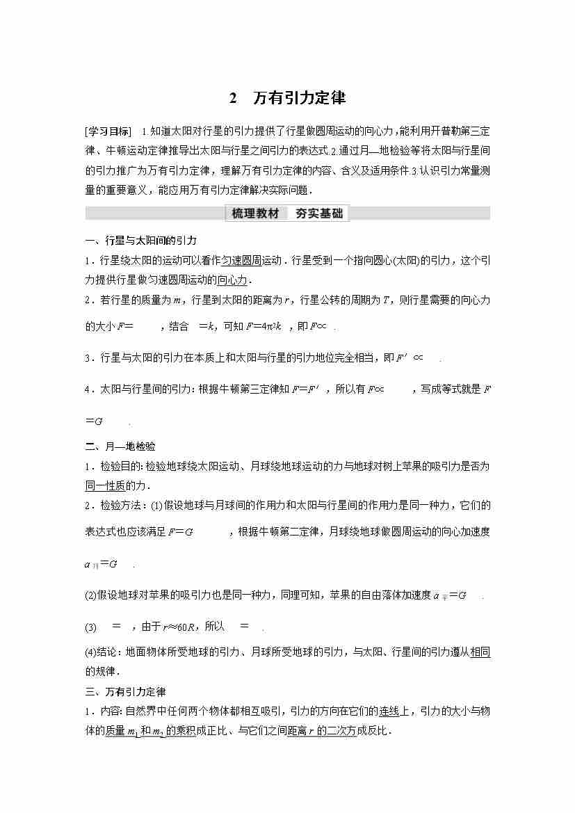 高中物理新教材同步必修第二册 第7章 2 万有引力定律