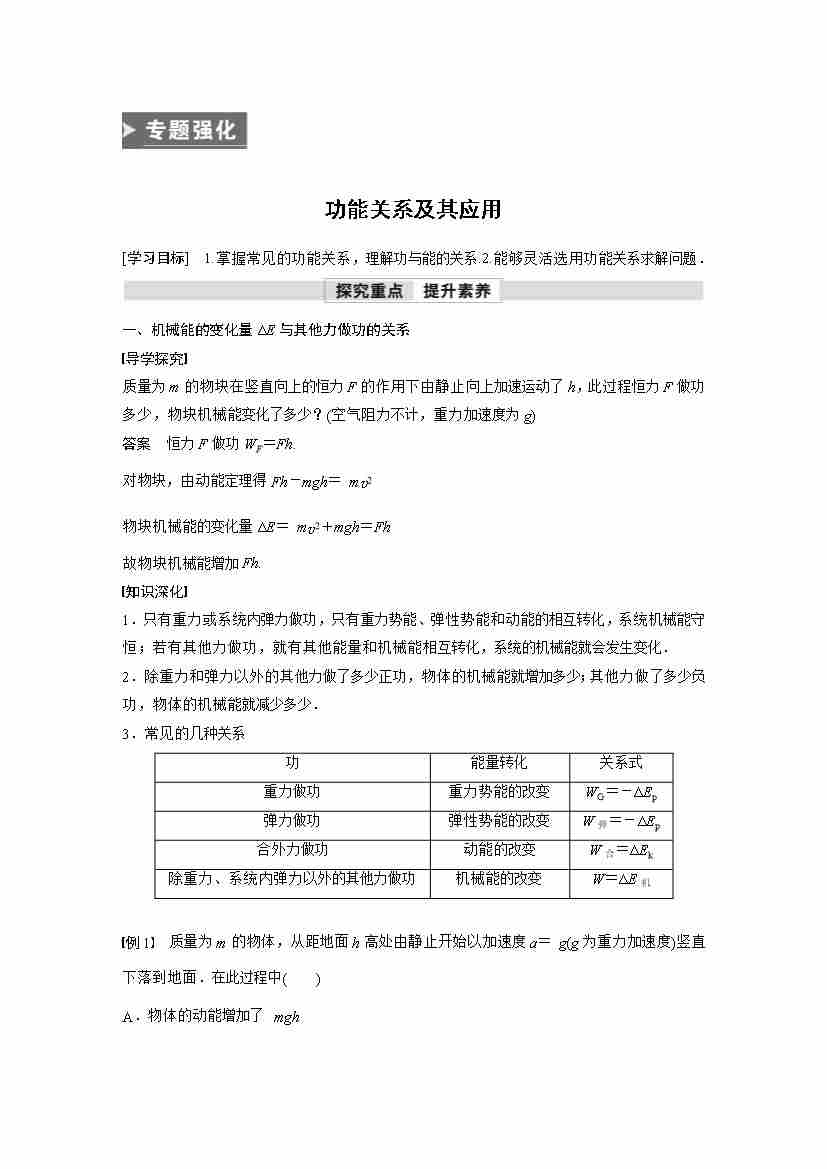 高中物理新教材同步必修第二册 第8章 专题强化 功能关系及其应用