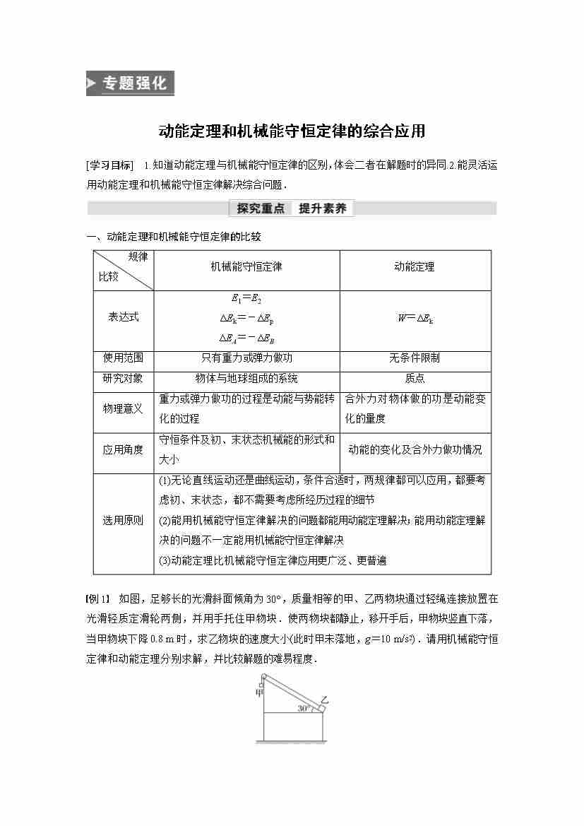 高中物理新教材同步必修第二册 第8章 专题强化 动能定理和机械能守恒定律的综合应用