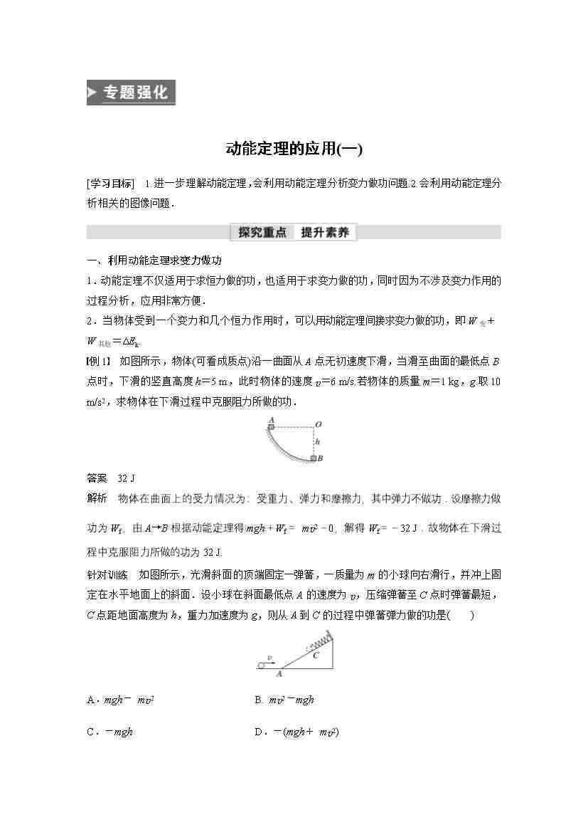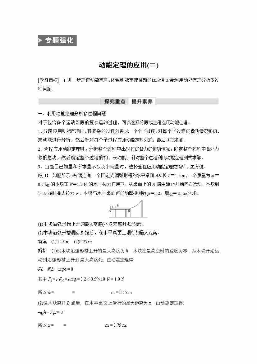 高中物理新教材同步必修第二册 第8章 专题强化 动能定理的应用(二)