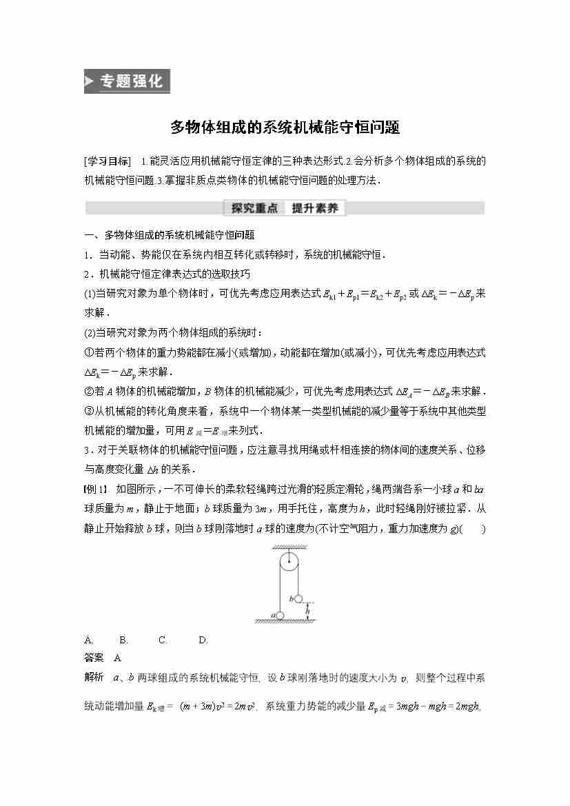 高中物理新教材同步必修第二册 第8章 专题强化 多物体组成的系统机械能守恒问题