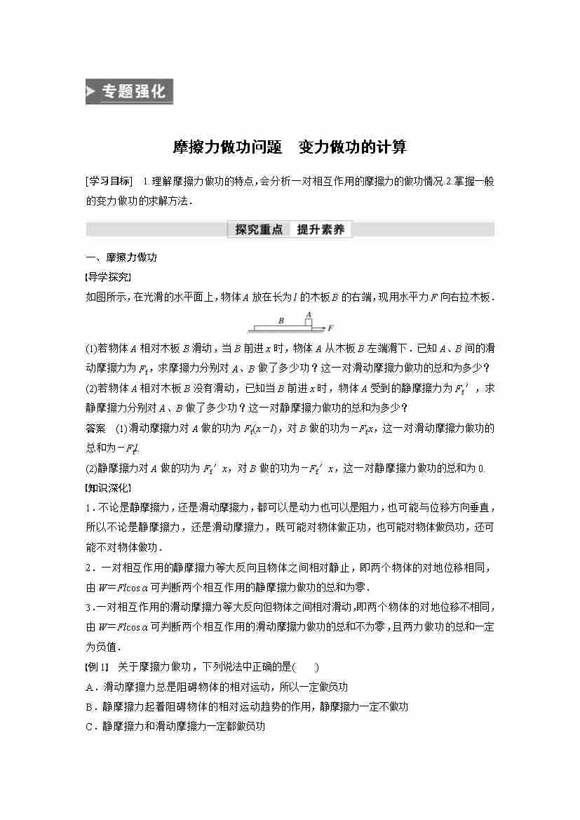 高中物理新教材同步必修第二册 第8章 专题强化 摩擦力做功问题 变力做功的计算