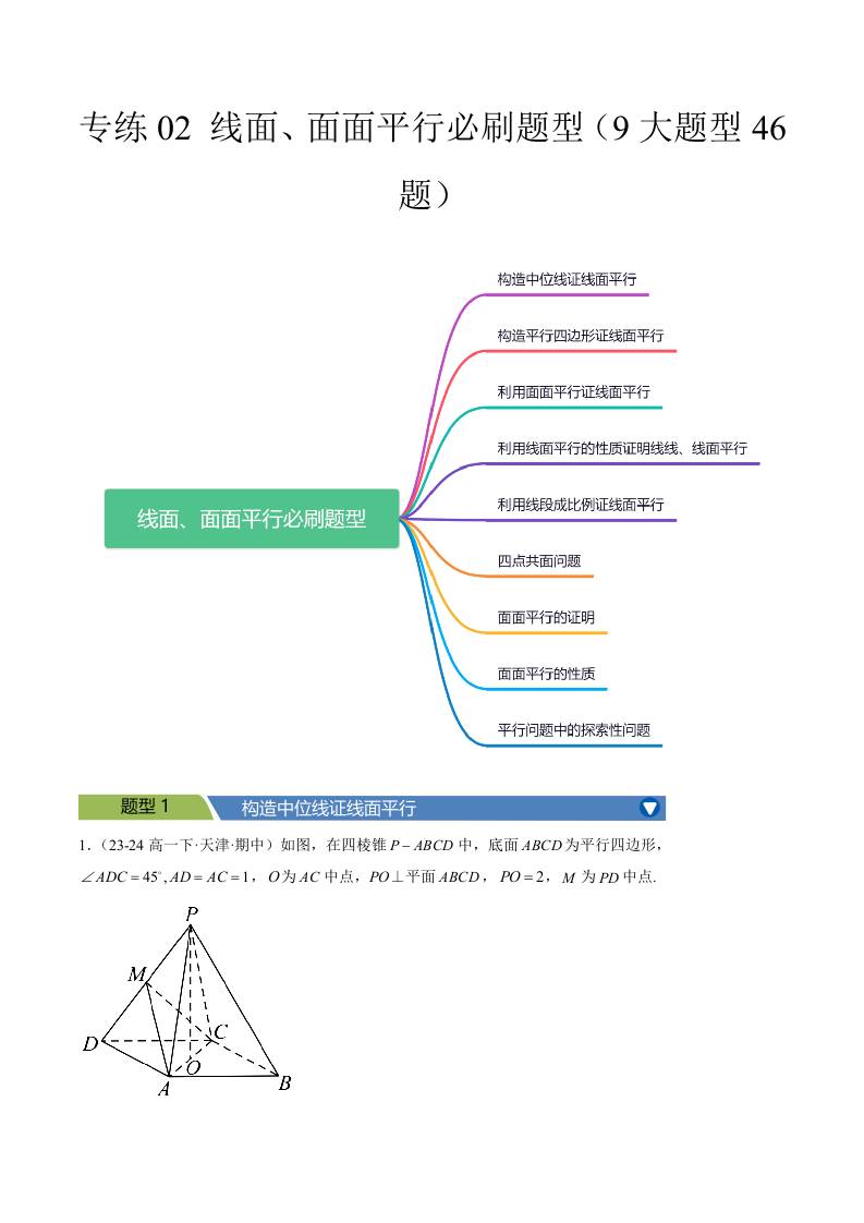 专练02 (最新好题速递)线面、面面平行必刷题型(9大题型46题)学生版