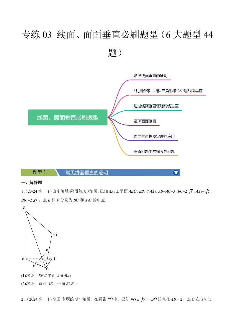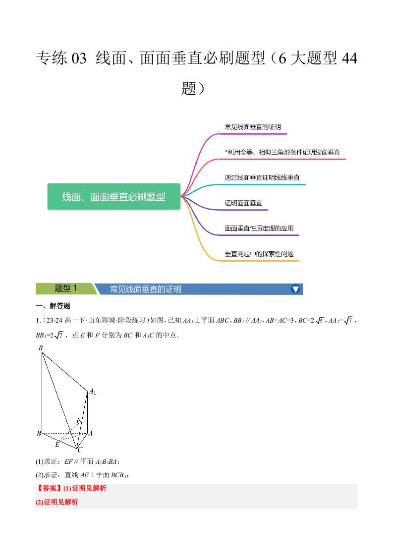 专练03 (最新好题速递)线面、面面垂直必刷题型(6大题型44题)学生版
