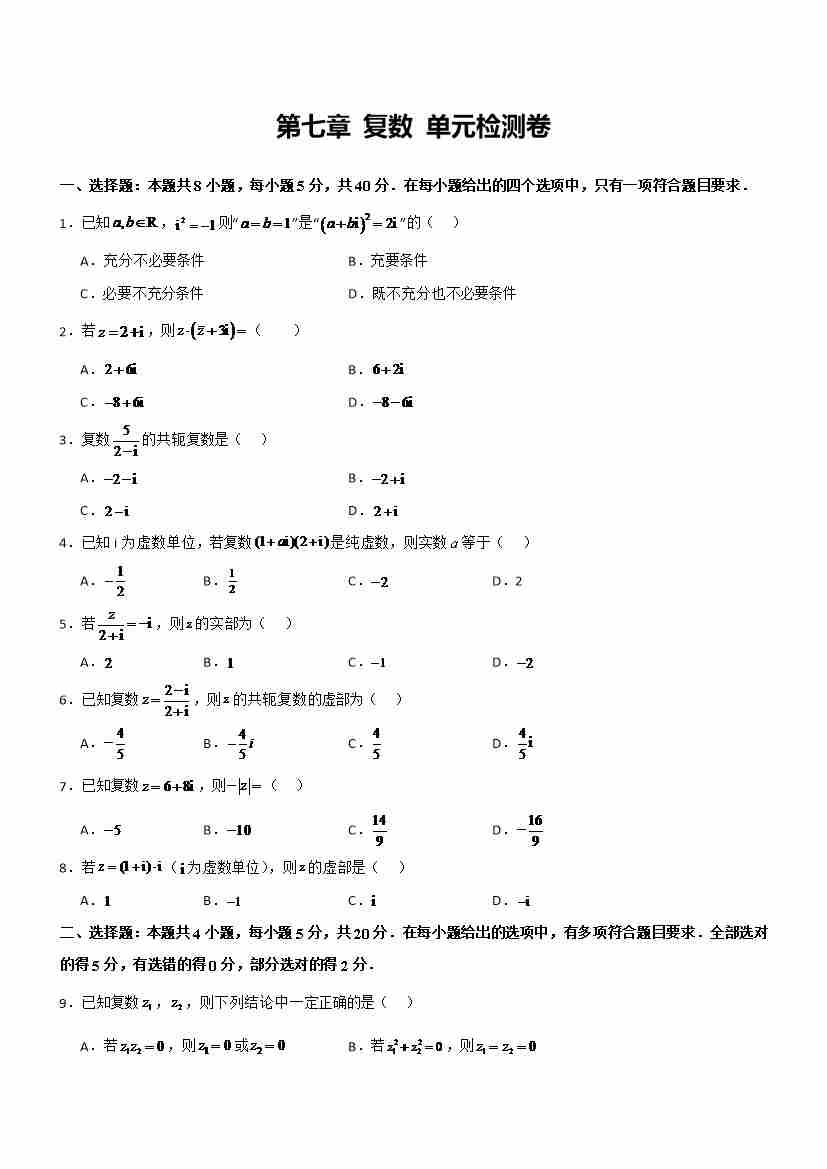 第七章 复数 (单元测试) (原卷版)