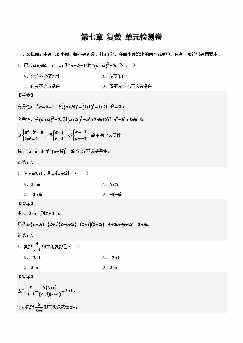 第七章 复数 (单元测试) (解析版)